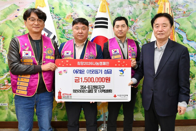 1지역과 화천클럽이 함께하는 이웃돕기 성금 전달 페이지 정보 작성자 춘천 댓글 0건 조회 28회 작성일 26-04-09 22:57 본문 2026년 4월 9일 1지역 임원일동과 화천 라이온스클럽이 함께 화천군에 어려운 이웃돕기 성금을 전달 하는 뜻깊은 행사를 진행 하였습니다. 목록 이전글원주 백산클럽 밥상공동체 종합사회복지관 배식봉사 26.04.11 다음글원주제일클럽 장학금전달식 26.04.09